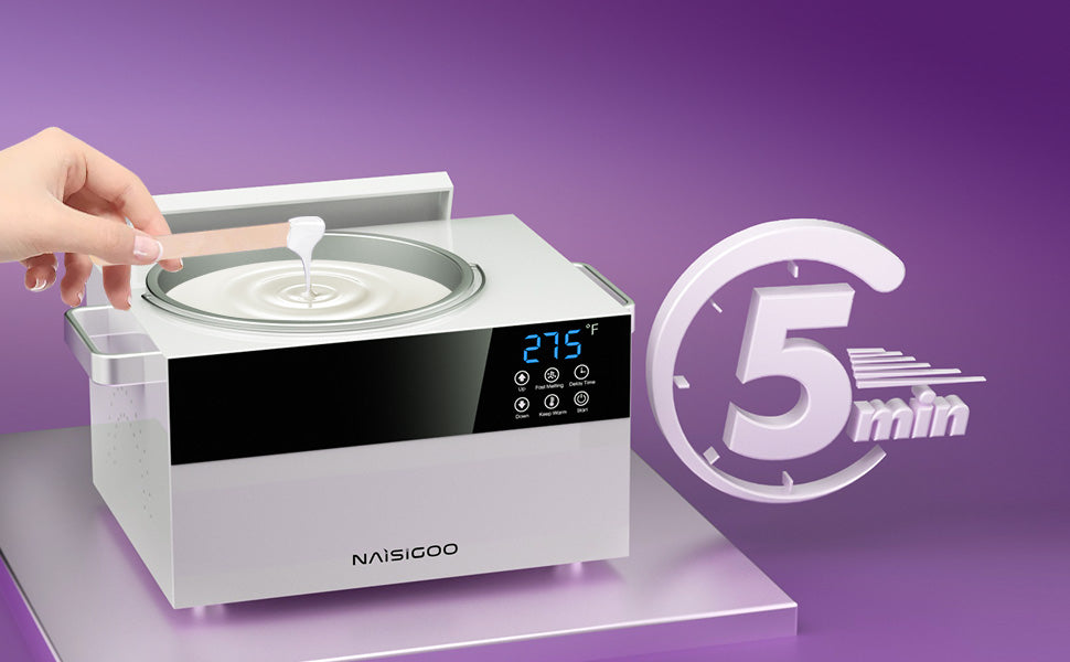 ワックスが溶けるまで10分以上待つことにうんざりしていませんか?当社の「高速溶解」ボタンで問題を解決します。タップするだけで、ワックスがけ用のワックスウォーマーは最大275°Fまで素早く加熱し、5分以内にワックスビーズを均一に溶かします。ワックスが溶けるまで待たなくても、友達と夜の外出の準備ができることを想像してみてください。便利なタイマー機能を使用すると、スケジュールに合わせて開始時間を数時間遅らせることもできます。